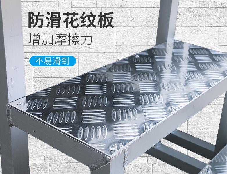 材質(zhì):加厚鋁合金;承重:300KG;踏板數(shù):二步三步;底腳:橡膠套腳;踏板:防滑鋁板3.0mm;非標(biāo)定制。