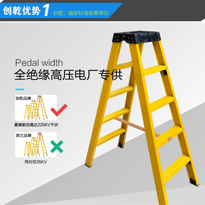 產品簡介:絕緣梯具有彈性好,長久使用不易疲勞,安全程度高,梯身色彩鮮不褪色,耐腐蝕,低吸水,重量輕于同級環氧樹脂梯子等優點。并配有防滑帶,防滑梯腳。防滑梯腳采用橡