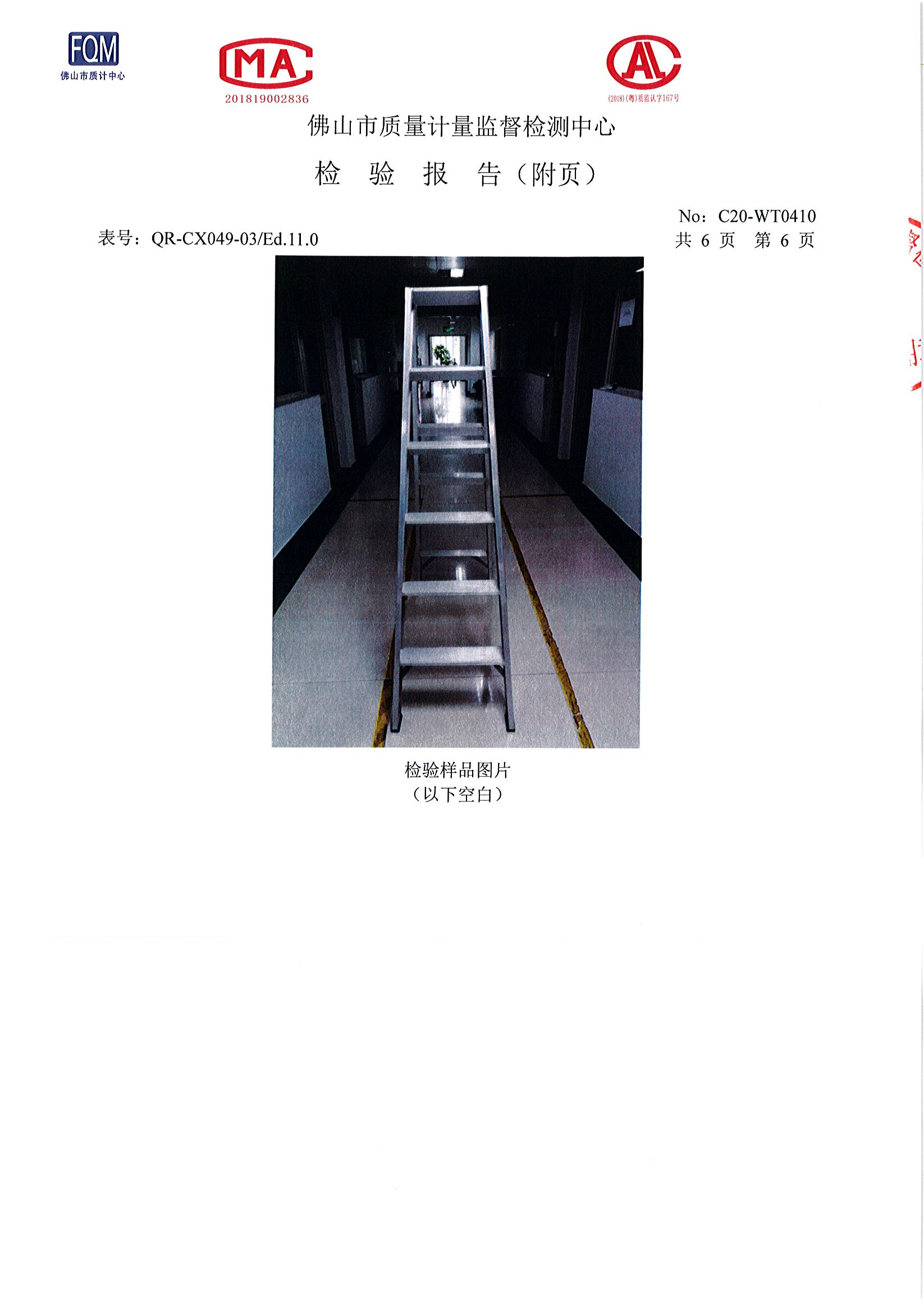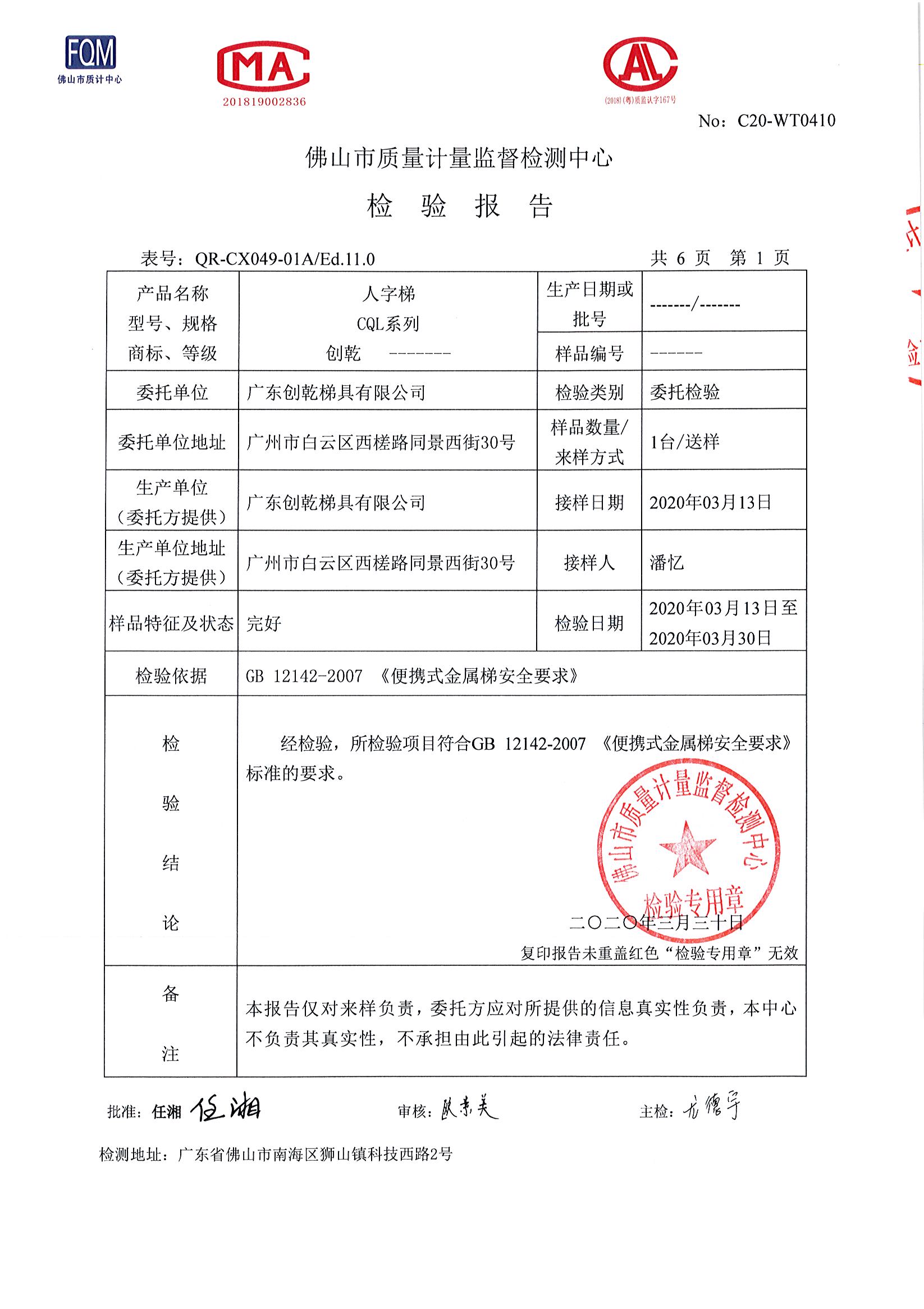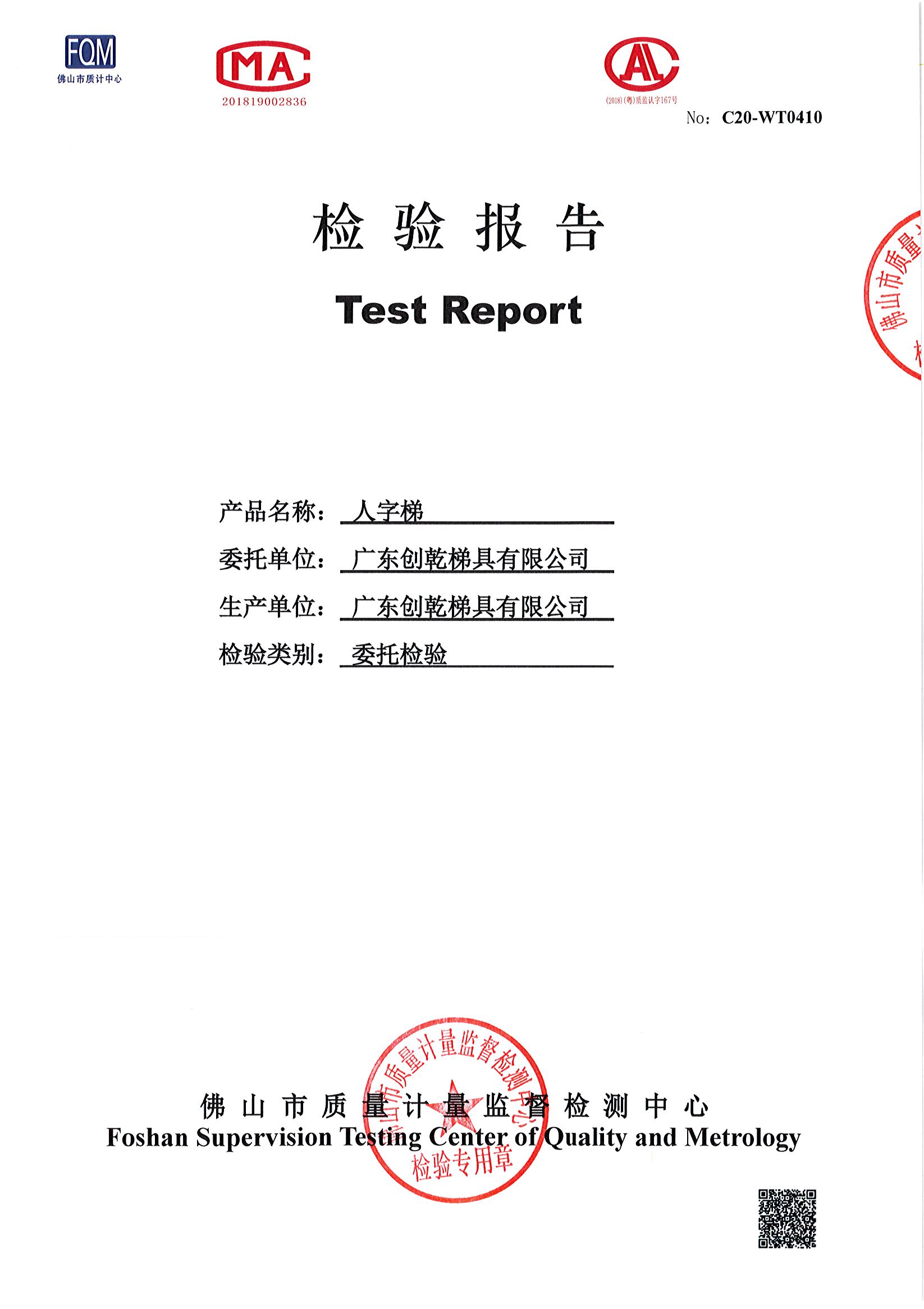 創乾人字梯檢測報告-榮譽資質-伸縮梯子|折疊梯子|鋁合金梯子|梯子|廣東創乾梯具有限公司