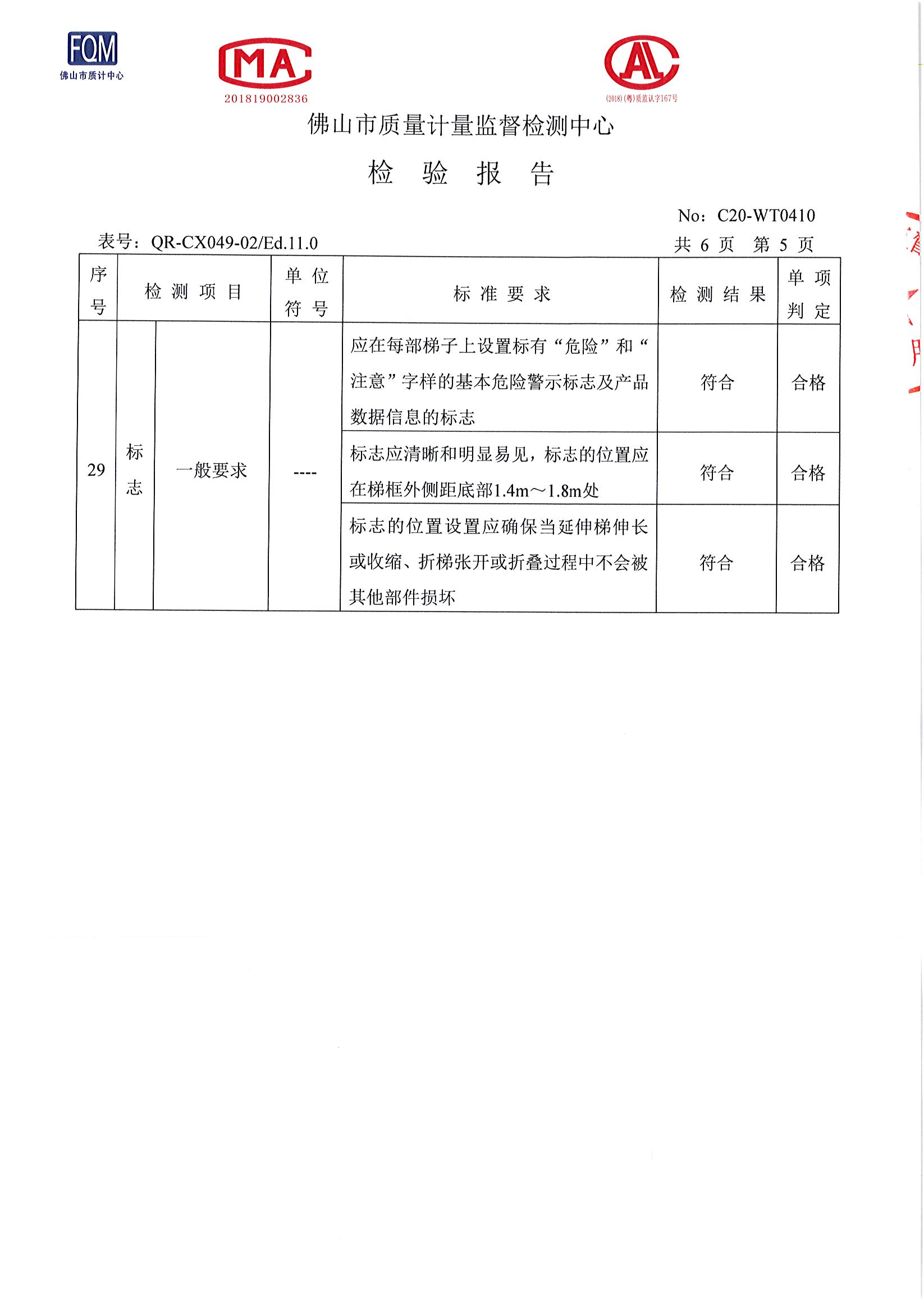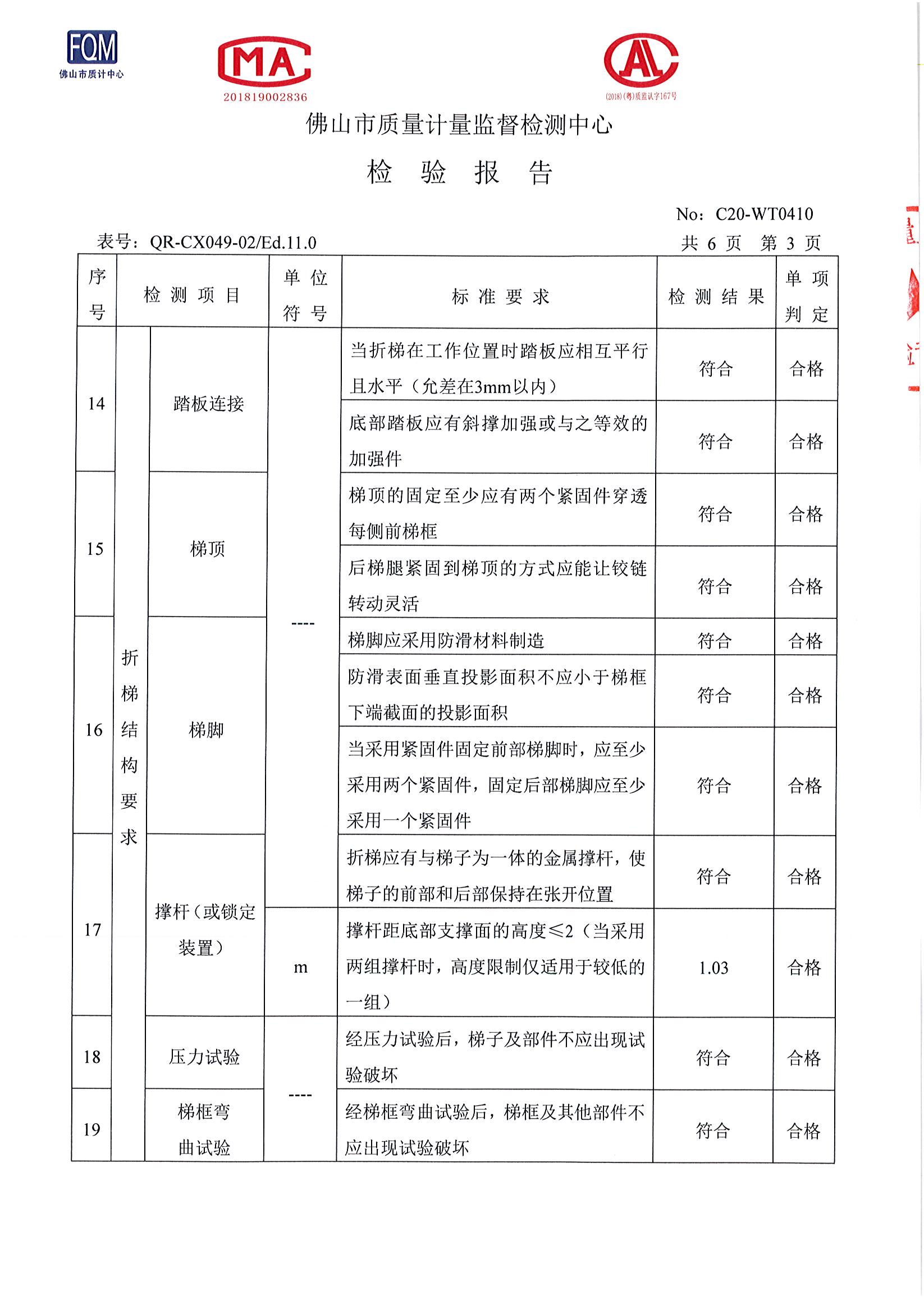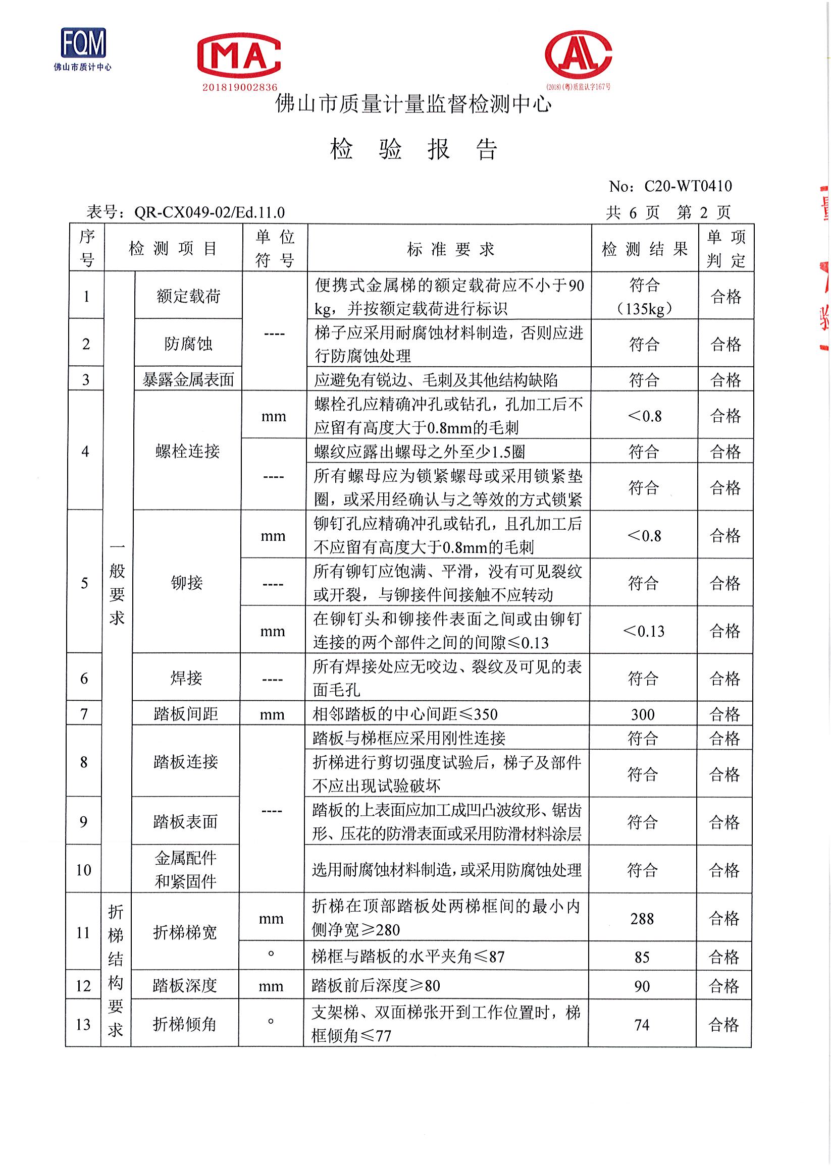 創乾人字梯檢測報告-榮譽資質-伸縮梯子|折疊梯子|鋁合金梯子|梯子|廣東創乾梯具有限公司