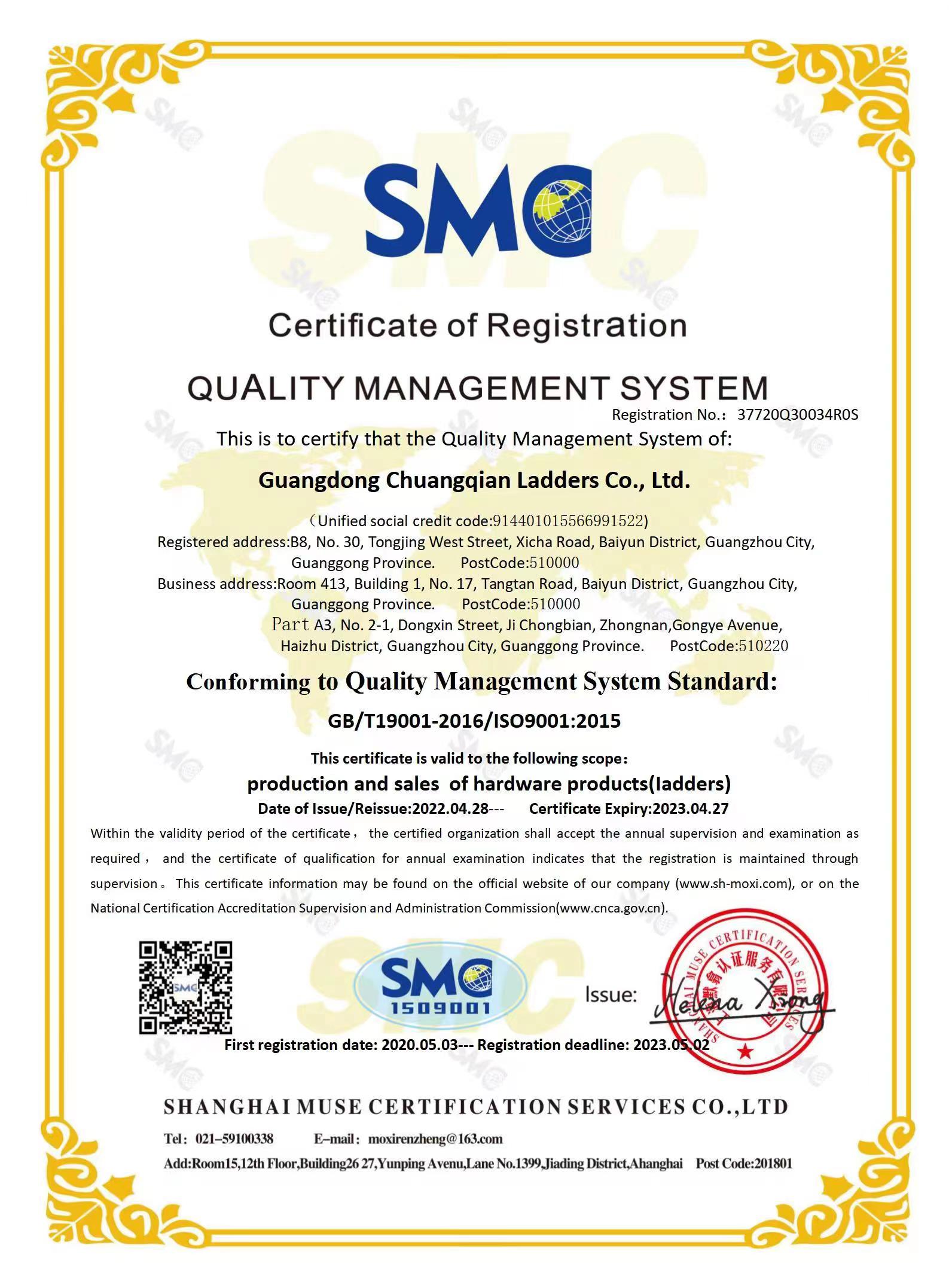 廣東創乾梯具有限公司歡迎您,主營:伸縮梯子,折疊梯子,鋁合金梯子,人字梯子,安全梯,竹節伸縮梯等產品!