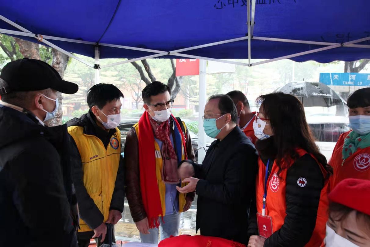 廣州血液中心書記付涌水、血源管理部主任何軍、天河南街人大工委主任傅光明早早來到了現場,為每位年初一大愛獻血的愛心人士以及參與服務的志愿者派發紅包,祝福大家在新的一年大吉大利、萬事順意。
