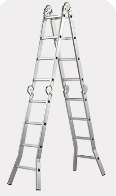 多用梯:可以在人字梯和直梯間切換,可以做很高,收起來約相當于同樣高度伸展梯一半長度,注意,操作不當容易夾手。