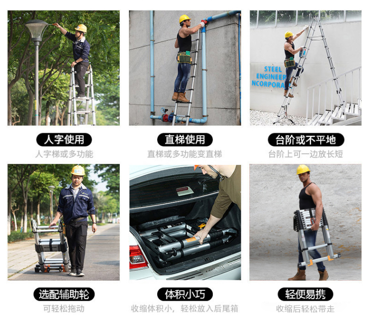 5.攀爬時人面向梯子,雙手抓牢,身體重心堅持在兩梯柱中央;
